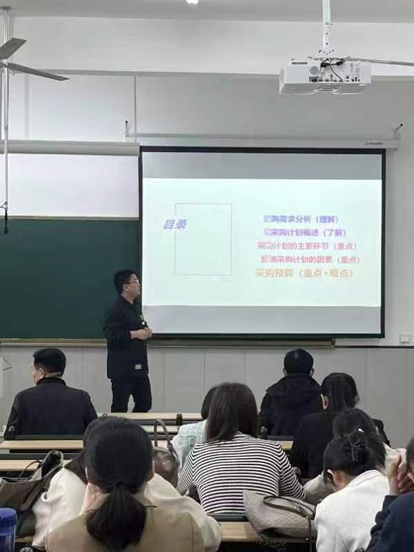 会议伊始,由肖广来老师先试讲采购计划与预算,肖老师通过实例引入课堂,先讲了需求分析的目的和内容,随后,他强调推导分析法要进行严格的推导计算,不能凭空估计;随后,由王钰茜老师试讲了国际多式联运,王老师讲到国际多式联运的定义、基本条件和优点,最后,她通过案例将新学内容进行灵活运用。试讲结束后,由经管学院物流教研室主任张璐对两位教师分别予以点评;紧接着,蒋红哲副院长对两位教师提出建议,强调了思政融入课堂的重要性;最后,河南师范大学商学院刘新同教授强调课堂导入的重要性,同时要与实践融合,并强调案例与知识点一定要相契合。至此,第三期试讲主题会议圆满结束。