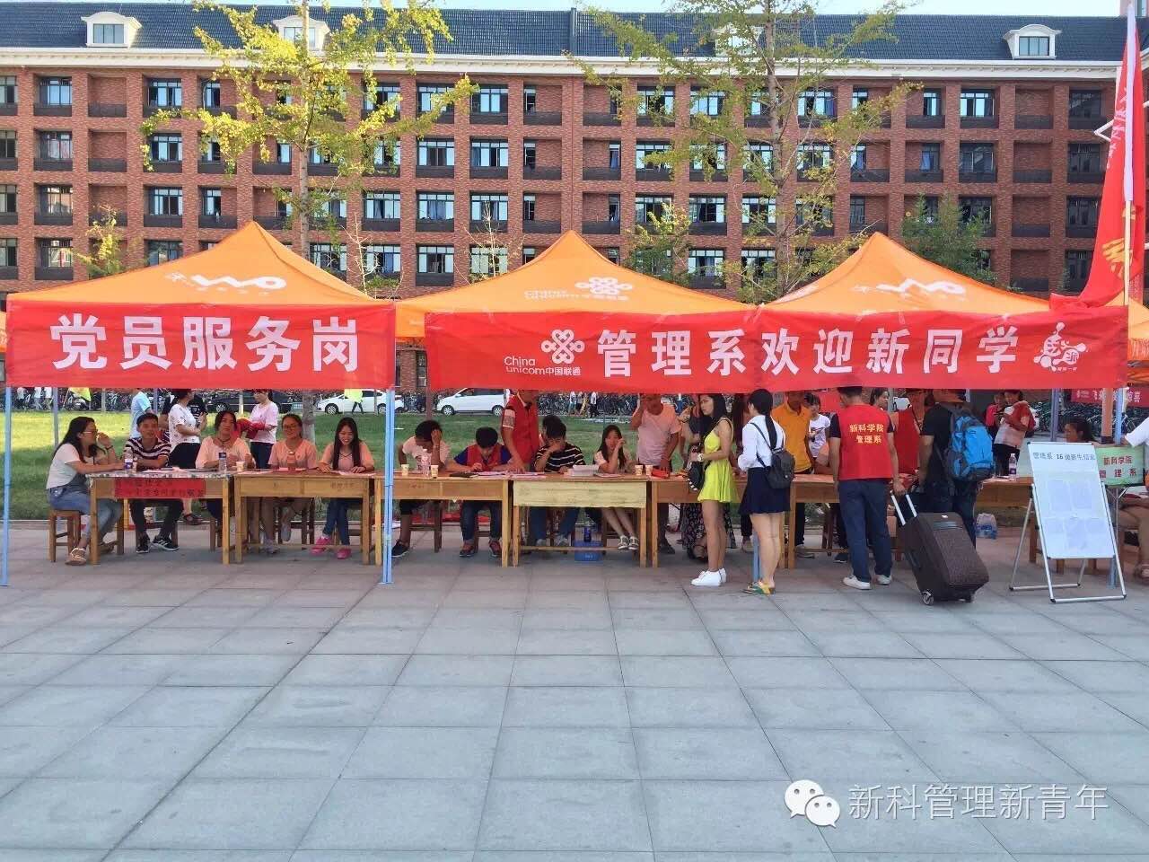 迎新服务当天正值教师节,管理系全体教工党员自觉坚守岗位,切实保障2016年迎新工作的扎实有序开展。