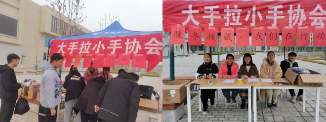 为了培养学生的爱心和感恩奉献精神,建设良好的校园文化氛围,由新科学院团委主办、大手拉小手协会承办的“暖冬援藏,我们在行动”活动于12月10日至11日在B1与B2楼主干道两侧展开,活动以西藏为扶贫对象,参与人员为大手拉小手协会成员,18级、19级、20级辅导员参加了本次活动。