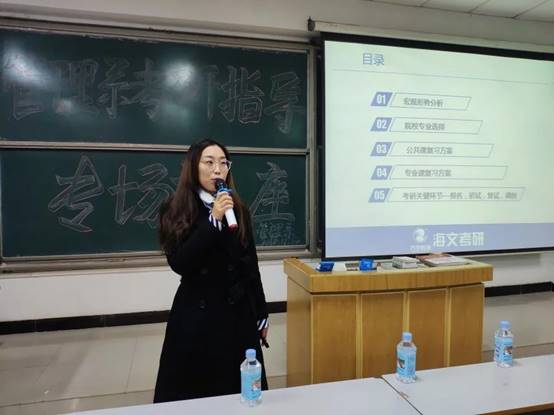 为了给考研同学指明学习方向,激发同学们的学习热情与考研激情,管理系于11月22日,在12号教学楼合二教室举办考研指导专场讲座。此次讲座特邀首都师范大学教育硕士陈晓丽女士担任主讲人。管理系行政副主任朱国政出席此次讲座,全体大三学生参加了此次讲座。