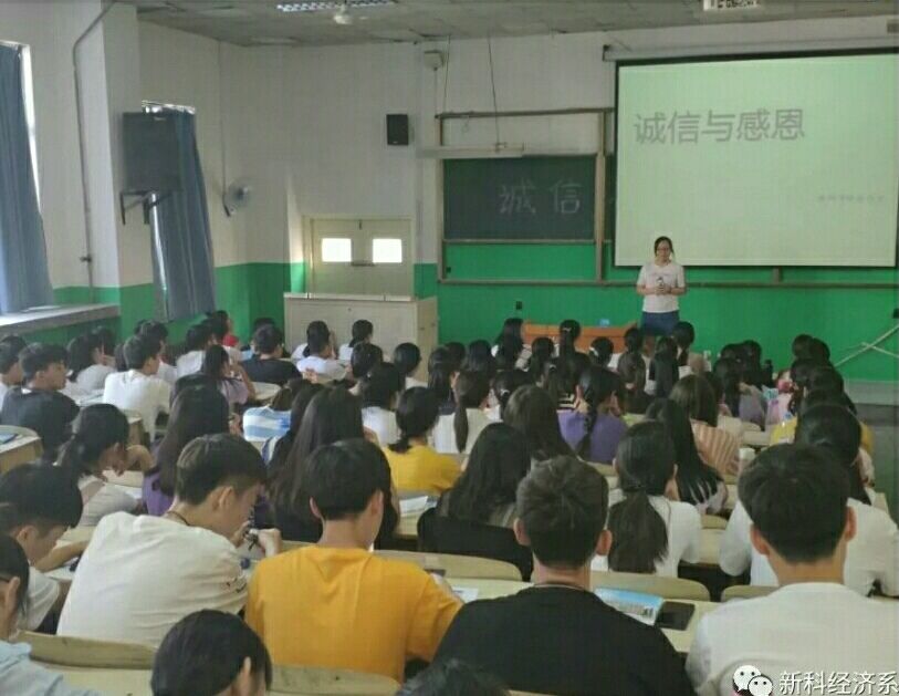 9月11日下午四点四十五,经济系于二号楼合八教室开展了诚信教育及感恩教育活动,18级辅导员轩金丽老师和18级全体同学出席了本次活动。