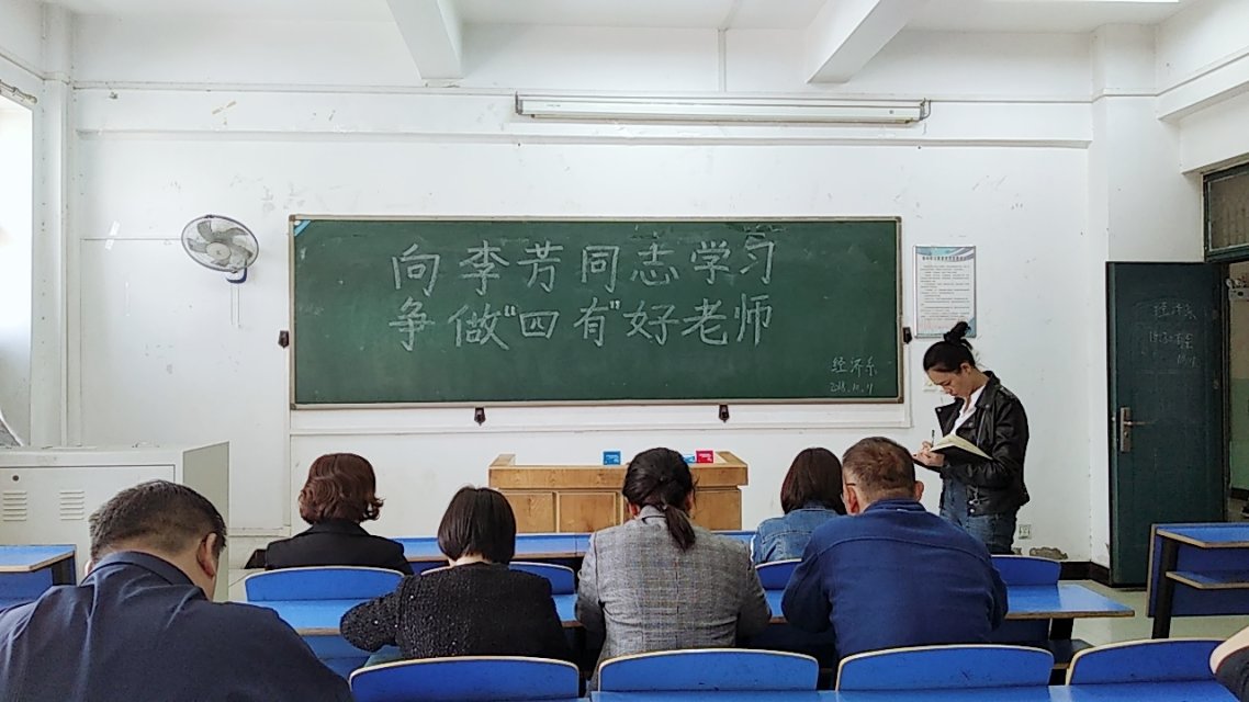 经济系主任田萌同志带领大家再次学习了李芳老师的先进事迹,她说李芳同志是我省优秀乡村教师中的杰出代表,是践行有理想信念、有道德情操、有扎实学识、有仁爱之心“四有”好老师的先锋模范,要以此次活动为契机,努力提升经济系师德师风建设工作成效。