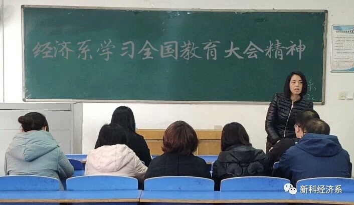 为进一步学习落实全国教育大会精神,深入学习习近平新时代中国特色社会主义思想,经济系于11月22日上午九点半在12号楼219教室召开“学习全国教育大会精神”主题会议。由系主任田萌主持会议,经济系全体教师出席了本次会议。