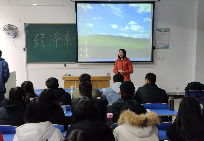 2018年12月26日上午8:30,经济系党支部书记述职报告会在12#203召开。参加此次会议的有:组宣部宋召彦老师、经济系教工党支部书记田萌、党总支第一支部书记蒋彬、第二支部书记赵润及全体学生党员。