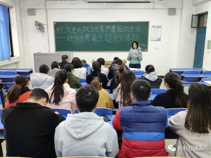 为深入学习贯彻党的十九大精神,落实党要管党、从严治党的要求,严格组织生活,规范支部工作,充分发挥党组织的凝聚力、战斗力,经济系于11月29日下午3点在12号楼202教室召开了以“规范党内政治生活、严格组织生活会”为主题的党日活动会议。会议由总支书记田萌同志主讲,全体教师党员和学生党员出席本次会议。