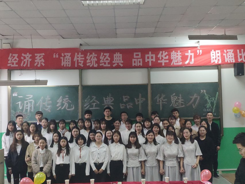 为深入贯彻习近平新时代中国特色社会主义思想,全面推动素质教育,提升学生文化和道德修养,经济系于2019年3月24日下午在2号楼合八教室举行以“诵传统经典,品中华魅力”为主题的朗诵比赛决赛。经济系教师出席担任本次比赛的嘉宾及评委。