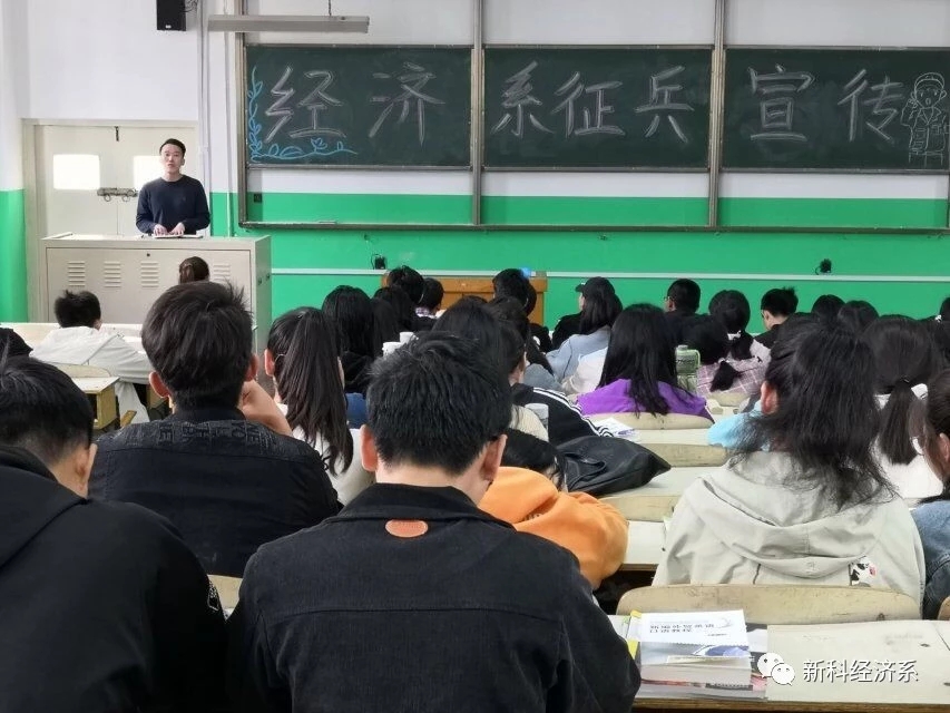 经济系主任田萌,各年级辅导员、退伍学生及各班级有意入伍的代表。