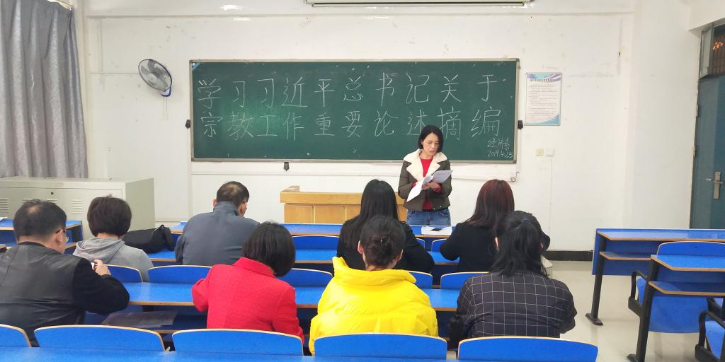 为深入学习领会习近平新时代中国特色社会主义思想,尤其是关于宗教工作的重要论述,4月25日,经济系于12号楼201教室举行宗教理论知识的学习培训,经济系全体老师出席。