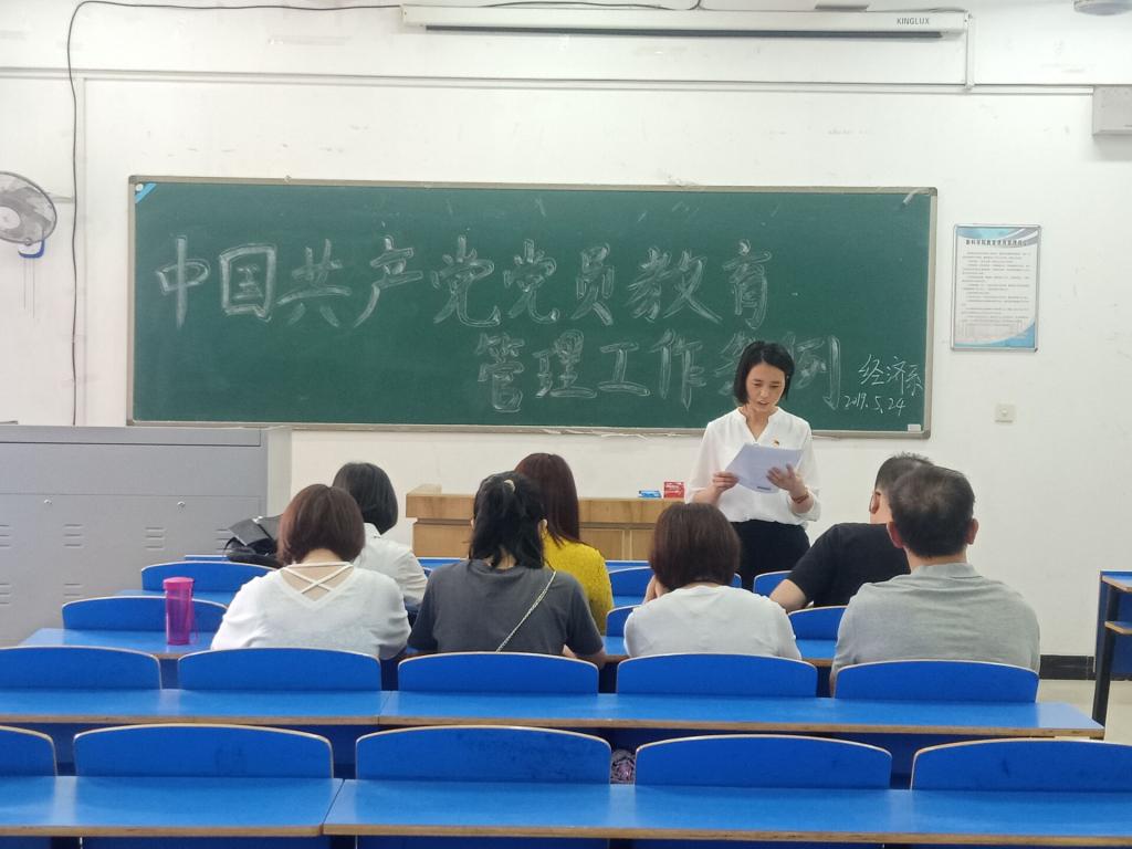 为了深入学习贯彻习近平新时代中国特色社会主义思想,加强党员教育管理工作,提高党员队伍建设质量,保持党员队伍的先进性和纯洁性,经济系特于5月24日上午八点四十五在12号楼召开经济系全体党员教师会议,由系主任田萌主持,我系全体党员教师出席。