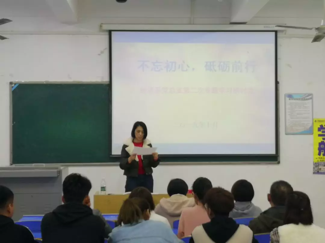 会议开始,田萌同志从习近平新时代社会主义思想照亮初心,初心使命的时代内涵、重大意义和使命担当,以及在实践中践行初心使命等方面,结合我系工作情况,带领大家深入体会党的初心使命;随后,田萌同志以党带领人民推进社会主义现代化建设的光辉历程,引导大家用历史思维对共产党人的初心和使命进行理解和把握,启发大家,中国共产党人的初心和使命正是在历史中生成,在推进社会主义现代化建设中得到检验,是激励中国共产党人不断前进的根本动力;接着,教工党员代表蒋彬同志发言,蒋彬同志强调了开展“不忘初心,牢记使命”主题活动的重要性,并说到大家应时刻牢记自己作为一名共产党人的初心和使命;随后教工党员臧亚丽同志表示作为党员教师必须坚守理想信念,提高道德修养,丰富专业知识,不忘教育初心,牢记育人使命,一步一个脚印,做好自己的育人工作;最后,田萌同志对大家提出要求,要以共产党人应有的奋斗目标投入到我系具体工作中去,共同致力于我系工作的向好发展。至此,本次研讨会圆满结束。