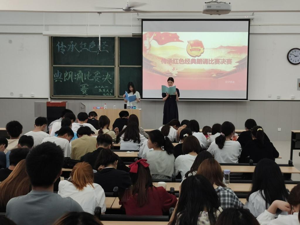 为庆祝中国共产党建党100周年,讴歌党100年历史征程中的光辉业绩,传承红色基因,经济系于2021年5月6日12:40开展了“传承红色经典,永远跟党走”朗诵比赛决赛,比赛由经济系学生会组宣部承办,晋级选手到场参赛。