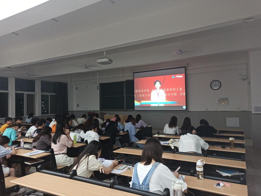为了隆重庆祝中国共产党成立100周年,使广大师生进一步了解中国革命历史和新中国成立的艰苦奋斗历程,积极响应河南省教育厅举办的“百部电影进课堂——党史学习教育主题思政课集体汇报展演”,庆祝我院作为获奖单位上台领奖。我系于2021年6月18日晚19:00至20:30在B2-309教室组织同学们观看展演直播。