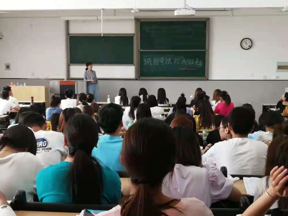 会议伊始,李新爽老师首先强调了诚信考试的重要性及非诚信考试的弊端;随后,她向大家宣读了学生手册有关考场纪律的条例,并教导大家要严格遵守相关的考规考纪不能作弊,还给大家强调了违纪作弊的严重性,鼓励同学们合理安排时间,有计划、有效率的进行复习;最后,李老师表示:希望同学们树立诚信为本的道德观念,遵循公平公正的考风考纪,避免考试过程中作弊现象的发生,并号召学生干部以身作则,督促大家认真学习,争取在期末考试中获得好成绩。至此,本次会议圆满结束。