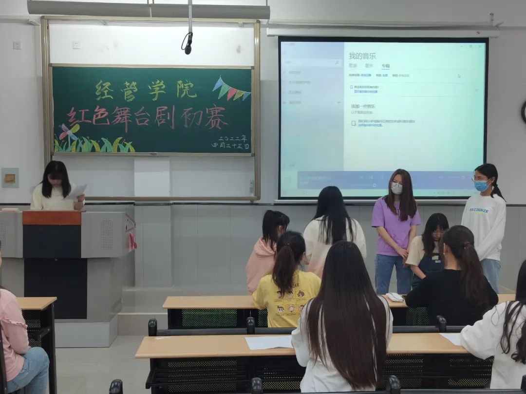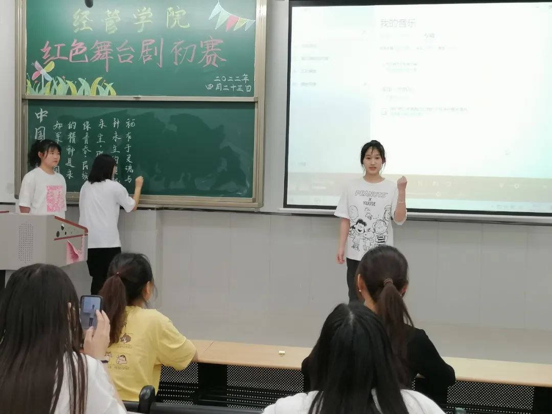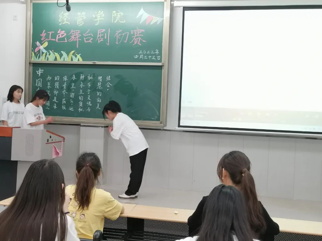 为迎接党的二十大,庆祝建团100周年,大力弘扬以爱国主义为核心的伟大民族精神,展现新青年的独特魅力,经管学院于4月23日在教学楼1-208组织开展以“喜迎二十大,永远跟党走,奋进新征程”为主题的红色舞台剧初赛。