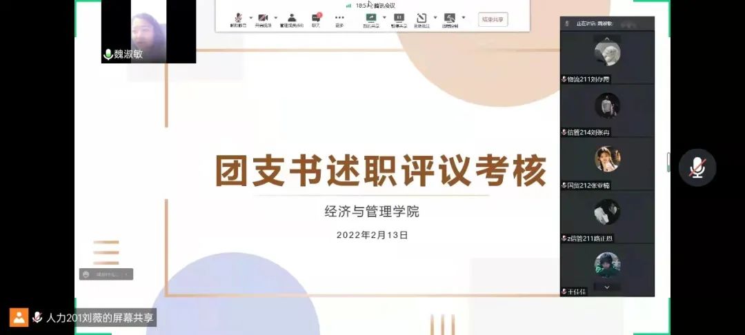 为进一步加强青少年思想引领,提高团支书的能力素养与政治素养。2022年2月13日,经管学院通过腾讯会议软件开展团支书线上述职考核会议。此次会议由经管学院团总支书记魏淑敏主持,各级各班团支书按时与会并依次作出工作汇报。