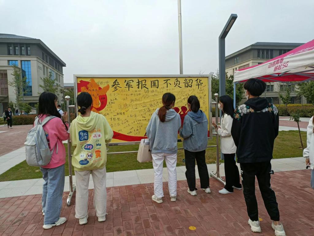 为扎实做好2022年大学生征兵宣传工作,鼓励大学生响应国家增强国防力量的号召,经济与管理学院于5月11日下午在校园国旗台附近举行以“参军报国,不负韶华”为主题的国旗台下签名活动,经管学院学生积极参加活动。