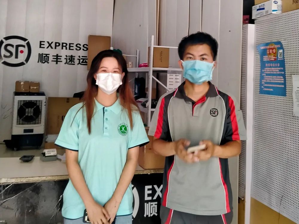 黄棋淇和王婉玉同学在新安县顺丰快递分部公司以及胡富昌和张贝贝同学在光山县顺丰快递分部公司中,通过对相关工作人员的采访,了解到了在疫情较为严重的初期,快递作为民生保障行业的重要组成部分,在非常时期担任着特殊的使命。为积极响应国家的号召,共同打赢这场战“疫”,顺丰快递公司恢复生产运营过程中严格落实疫情期间的安全防控规范,做好快递邮寄过程中一系列的消毒杀菌措施,确保广大客户邮寄快递的安全性。
