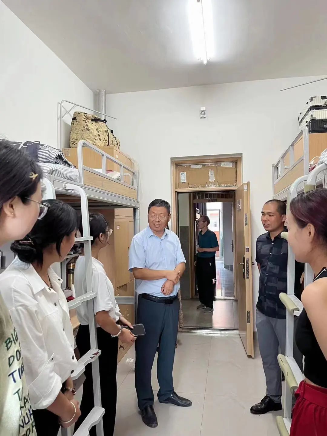 走访过程中,任院长与专升本信管、物流、营销等专业的新生们进行了亲切交流,询问了新生们在新环境下的适应情况,强调了同学们要增强校园安全意识,并提醒他们在学习或生活中遇到困难要积极向辅导员反映。张书记向学生介绍了学院基本情况及校园文化,帮助学生尽快融入大学生活。此外,新生辅导员们深入宿舍表达对同学们的关心和支持,向新生们传授了一些生活方法和技巧,并引导同学们建立积极融洽的宿舍氛围。