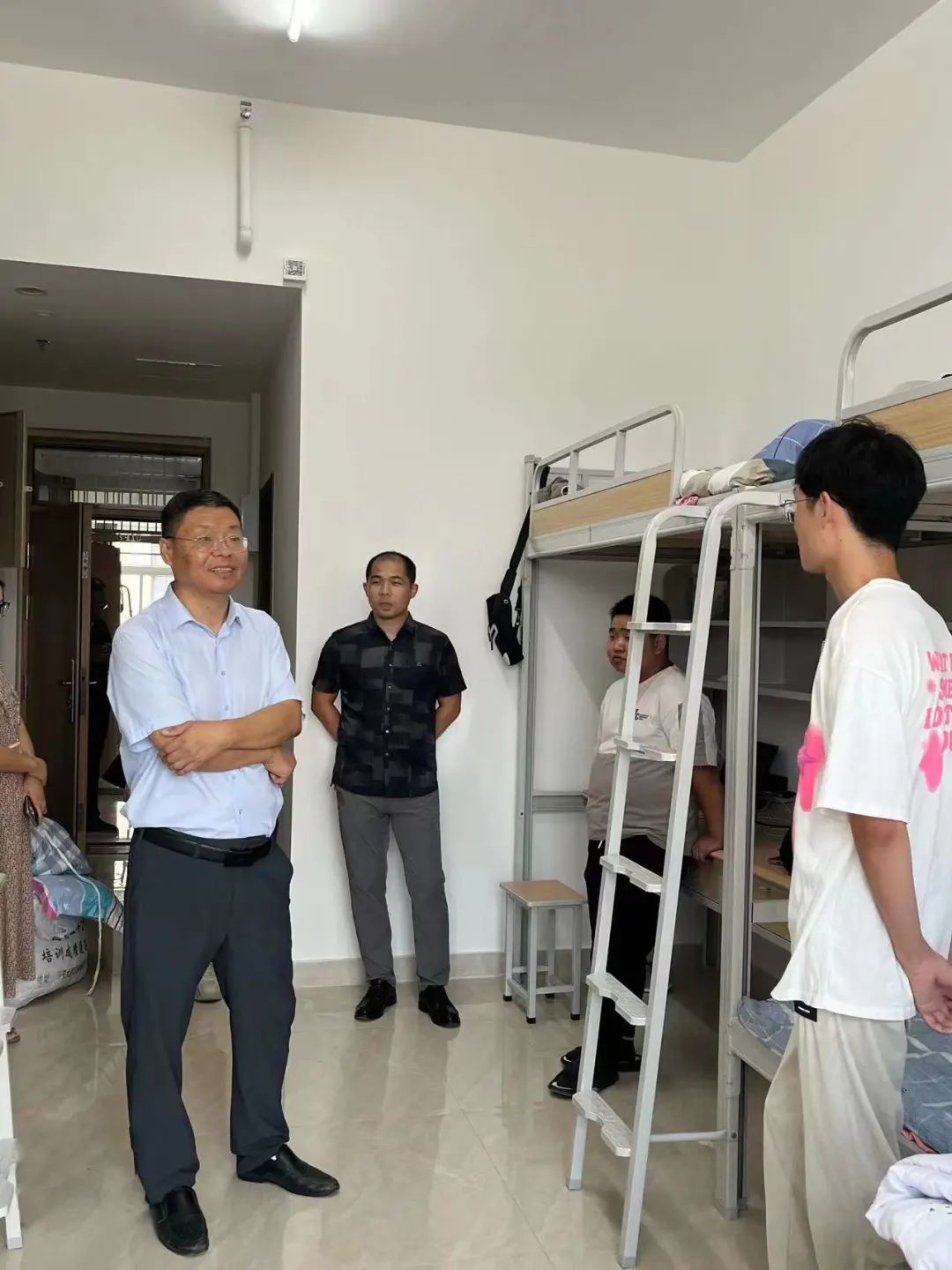 为了解我院专升本新生住宿情况,切实关怀学生成长,我院院长任太增、副书记张震、团总支书记魏淑敏以及各位专升本新生辅导员于2023年9月2日共同走访了S3和A2新生宿舍。