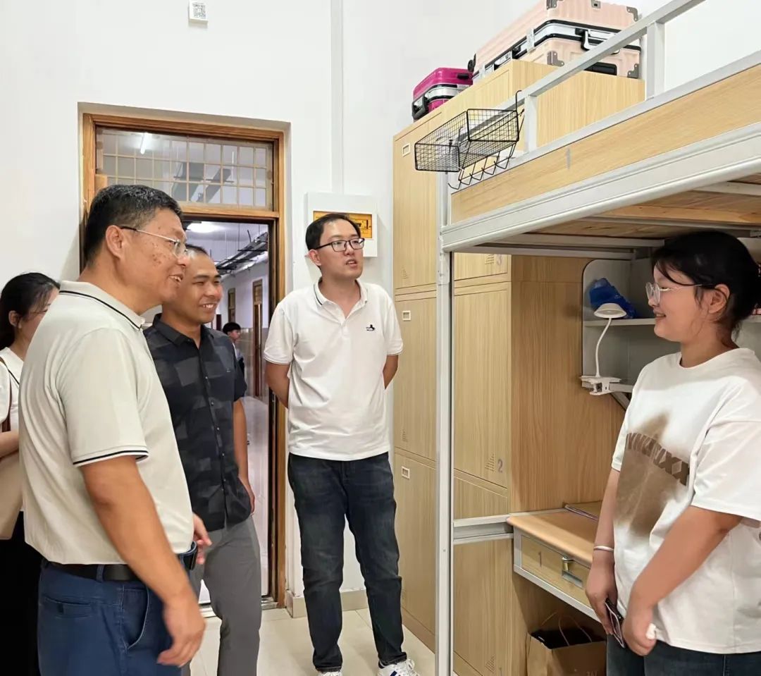 为保证新生顺利入学,了解新生住宿情况,9月9日下午,我院院长任太增,副书记张震,23级新生辅导员王康,丁瑞杰,一同走访了23级本科新生宿舍。