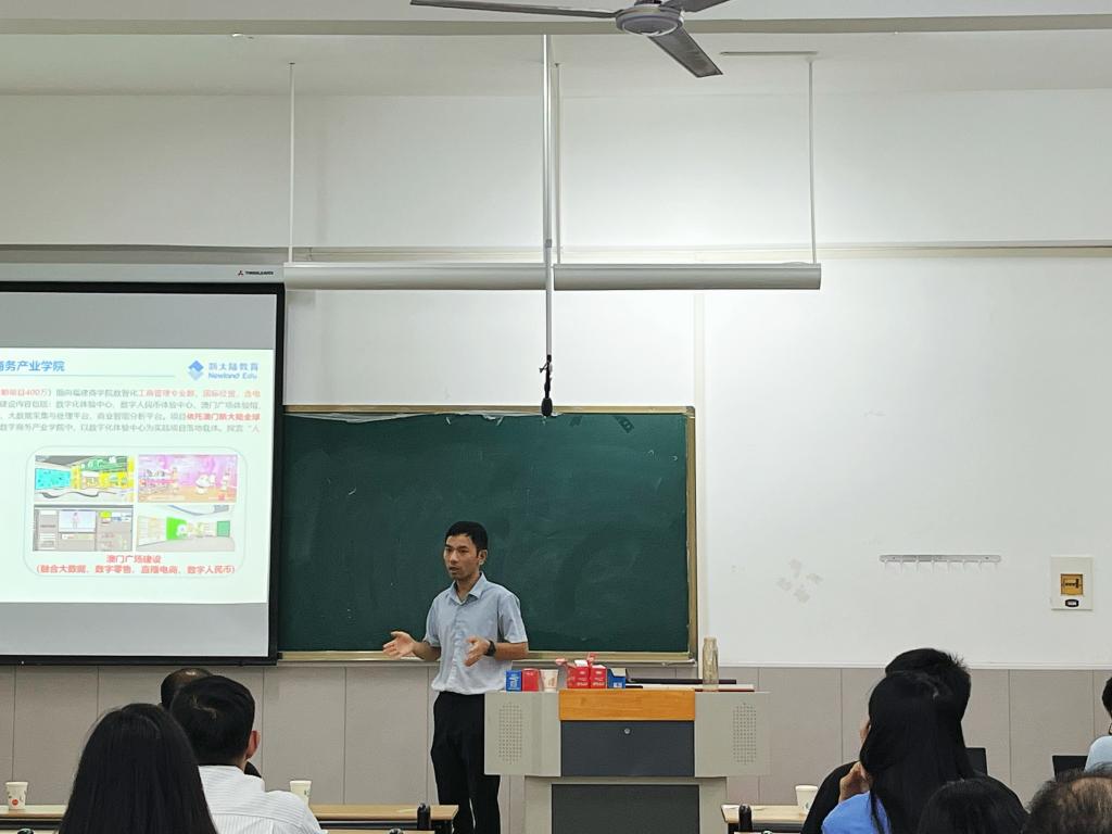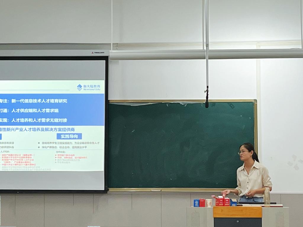 2023年9月21日,我院开展产教融合背景下的研学创就“一体化本科赋能建设”主题论坛,邀请北京新大陆时代科技有限公司大数据产品总监林志斌,市场总监冯新波,售前工程师耿天霞做详细讲解。本次论坛由院长任太增主持,副书记张震和全体教师参会。
