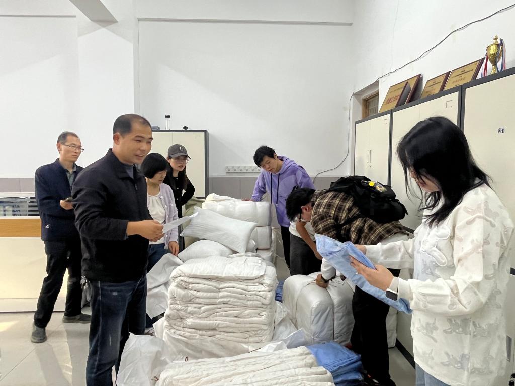 在发放仪式中,张震与新生们亲切交流,关注大家健康状况,询问学生们近期的学习生活,鼓励受资助的同学们刻苦学习,化温暖为动力,迎难而上,砥砺前行。随后,23级新生辅导员们逐一为新生发放了被子、被罩、床单等物品,让大家能够在寒冬到来前积蓄温暖与力量,以良好的状态迎接未来的学习生活。物资领取过程中,受助学子也纷纷表示学校的关怀让他们倍感温暖,一定会珍惜宝贵时间,不负老师的殷切期望。