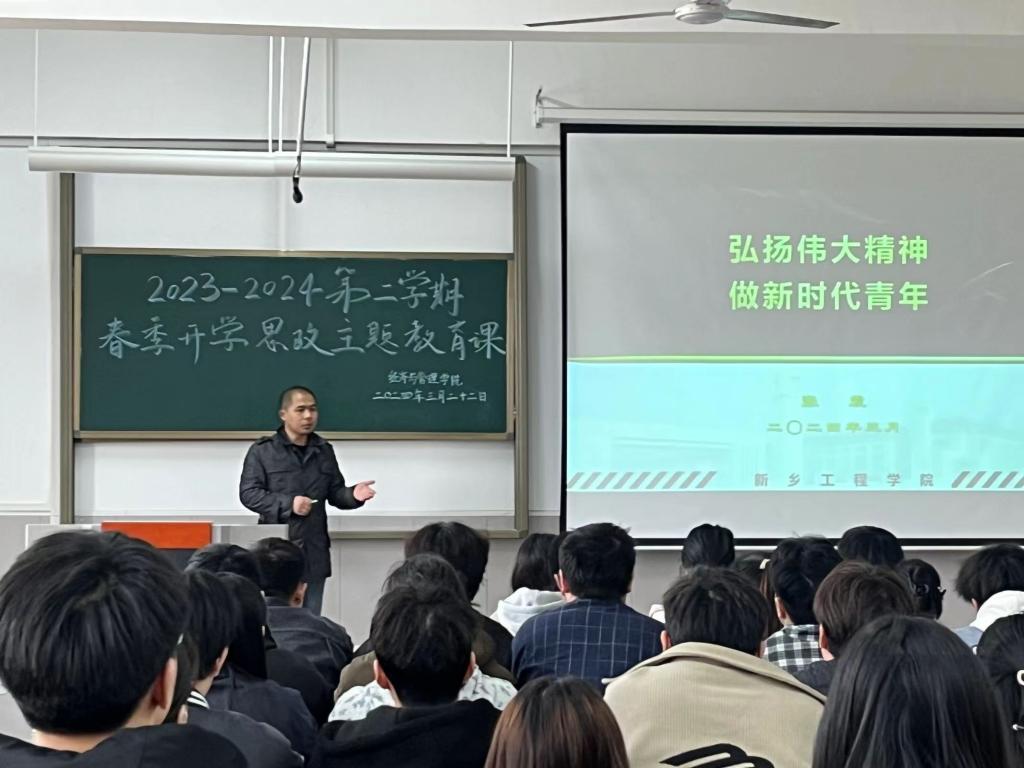 为深入学习贯彻2024年全国两会会议精神,加强思想政治引领,激发大学生树立理想信念,我院于3月22日在学院楼B303开展以“弘扬伟大精神,做新时代青年”为主题的春季思政第一课。本课由院党委副书记张震主持,全院学生党员,学生干部以及宿舍长准时参会。