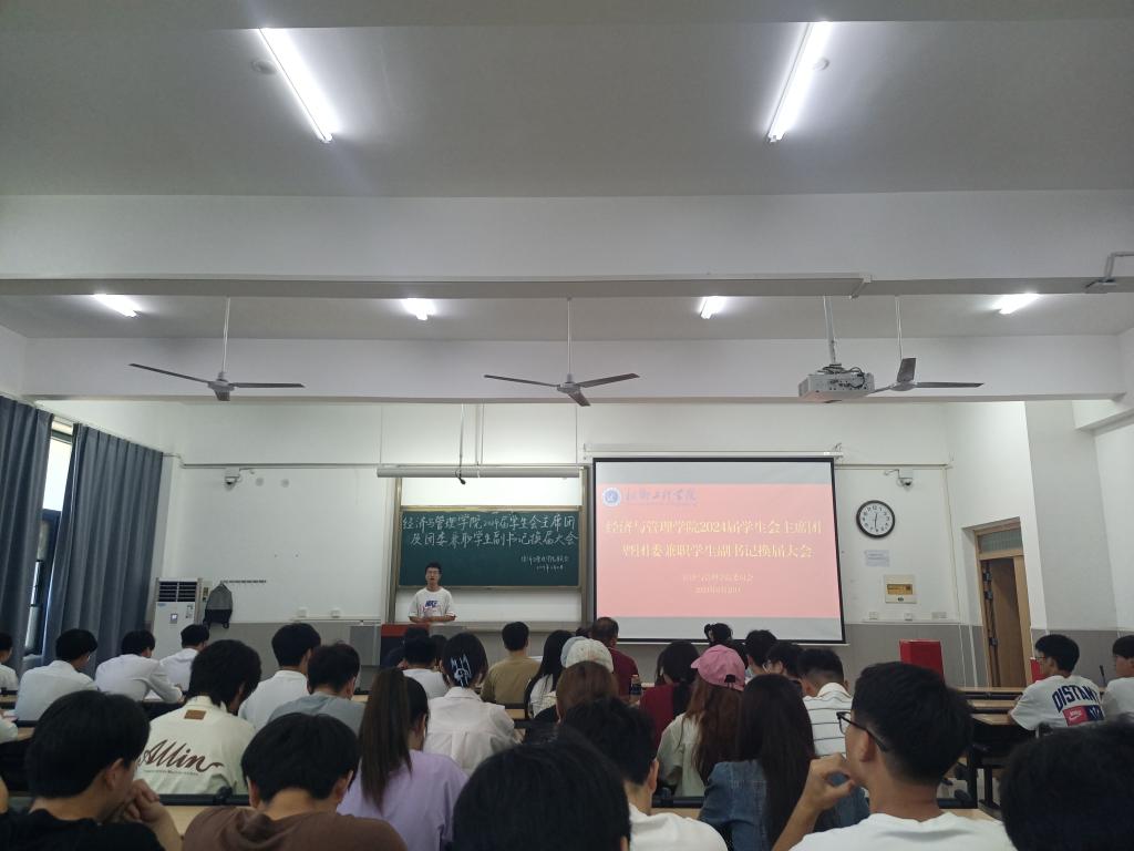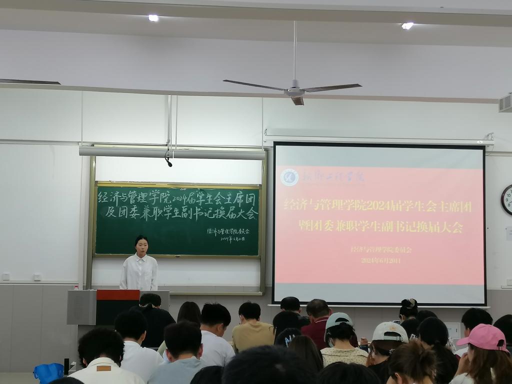 本次学生会主席团暨团委兼职学生副书记换届会议的召开,不仅是对新一届优秀学生的认可,更是对全体学生的一次深刻教育。相信在学院的正确领导下,经管学院学生会主席团的每一位成员将会以更加饱满的热情继续谱写经管学院的新篇章!