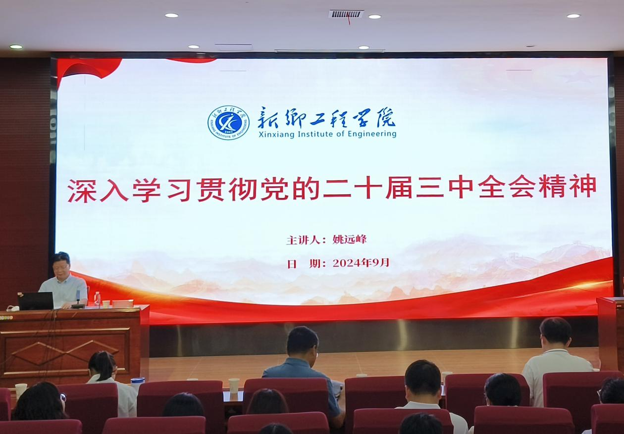 姚远峰以“深入学习贯彻党的二十届三中全会精神”为题,从深刻认识党的二十届三中全会的重大意义、围绕中国式现代化全面深化改革全面把握全会重点任务、全面抓好党的二十届三中全会精神贯彻落实、以改革创新的精神推进学校发展四个方面,对党的二十届三中全会精神进行了全面系统的解读。