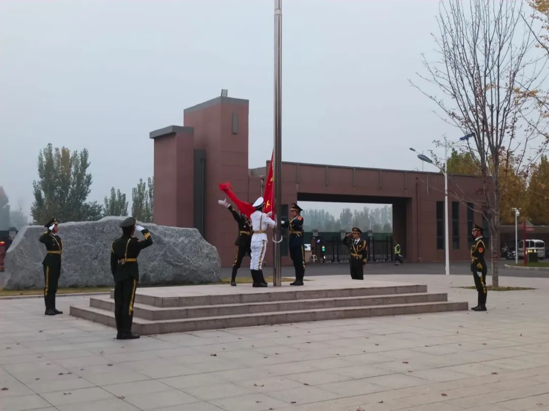 早晨七点,国旗护卫队身姿挺拔、步伐矫健,护卫着神圣的五星红旗走向升旗台。伴随着国歌,升旗手将国旗高高扬起,在晨风中徐徐上升,全体师生行注目礼。
