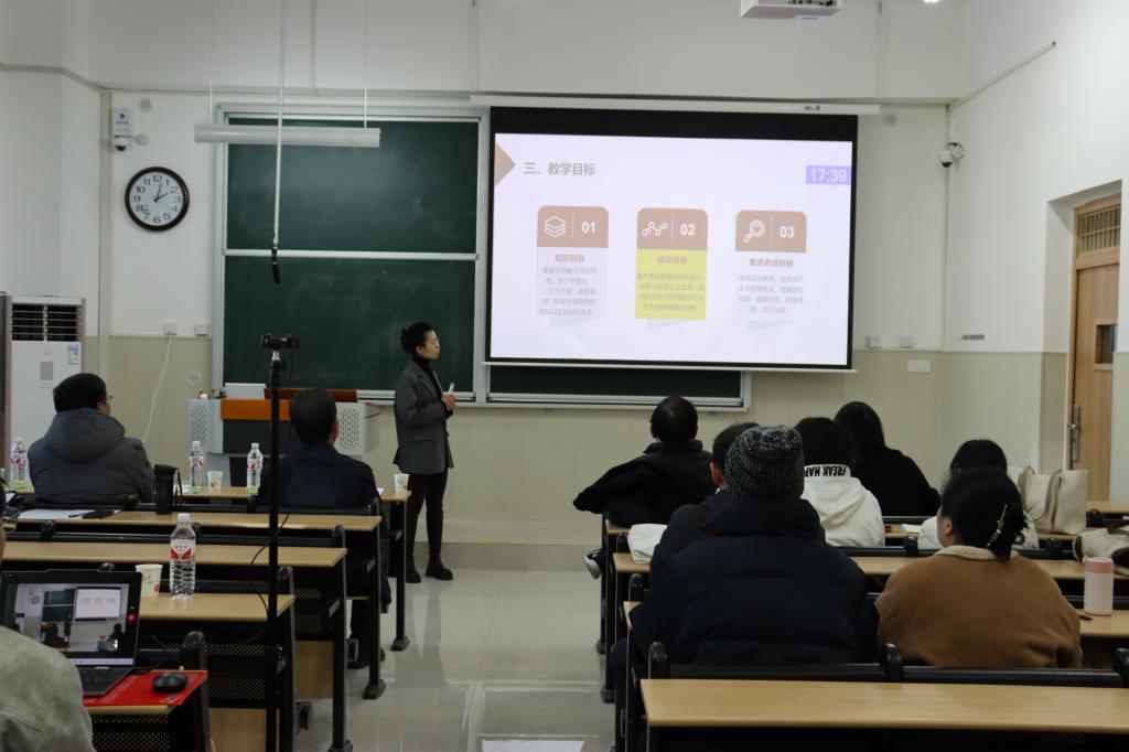 本次比赛的参赛老师共七位,他们分别来自劳动教育教研室、思想道德与法治教研室、公共体育Ⅰ教研室、毛泽东思想和中国特色社会主义理论体系概论教研室、物理教研室、公共外语教研室、中国近现代史纲要教研室。比赛分为PPT展示和说课授课两个环节,全面考察教师们的教学理念、课程设计及教学实践能力。在PPT展示环节,教师们通过精美的演示文稿,生动展现了各自课程的教学创新点、教学方法及预期效果,每一页画面都凝聚着他们对教育的深思熟虑与匠心独运;说课授课环节,更是将本次比赛推向高潮。教师们以饱满的热情、流畅的语言,将课程设计思路及教学实施过程娓娓道来,让人深切感受到教学创新的魅力与活力。