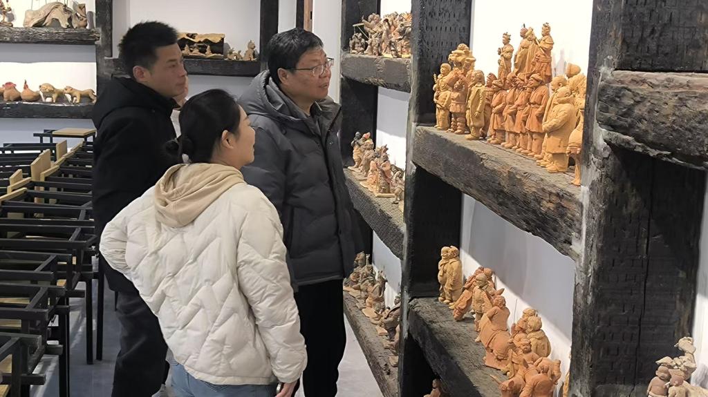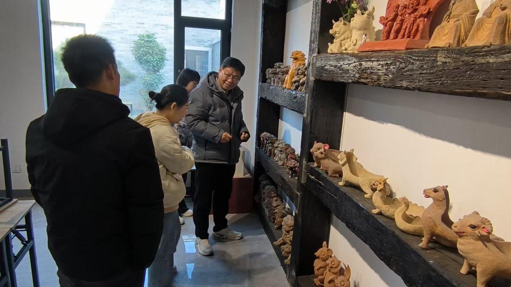 在庆春泥塑创始人宋庆春先生的引领下,学院领导及教师深入参观了泥塑作品泥咕咕,亲眼目睹了传统泥塑技艺与现代创意的完美融合。宋先生详细介绍了泥塑的制作流程、艺术特色及市场价值,展现了浚县泥塑的独特魅力与深厚文化底蕴。