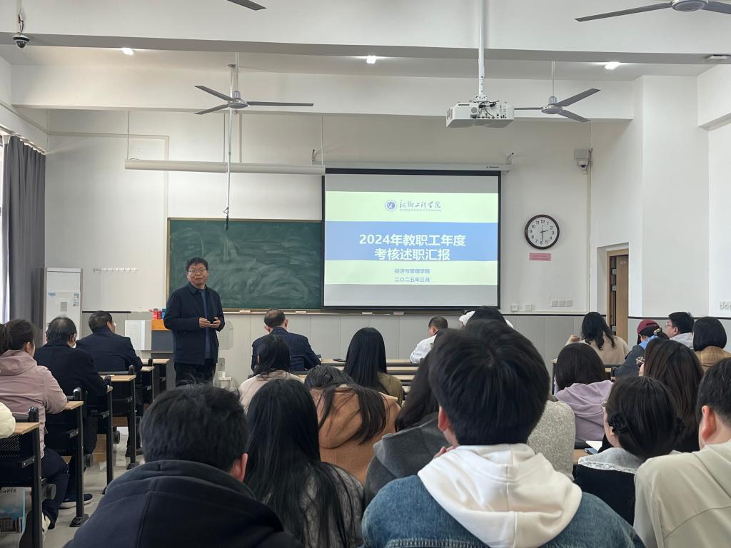 为全面总结2024年度工作情况,明确未来发展方向,3月20日,我院召开2024年度工作述职会。院长任太增、副院长赵蓓、副书记张震及全体教职工参会。