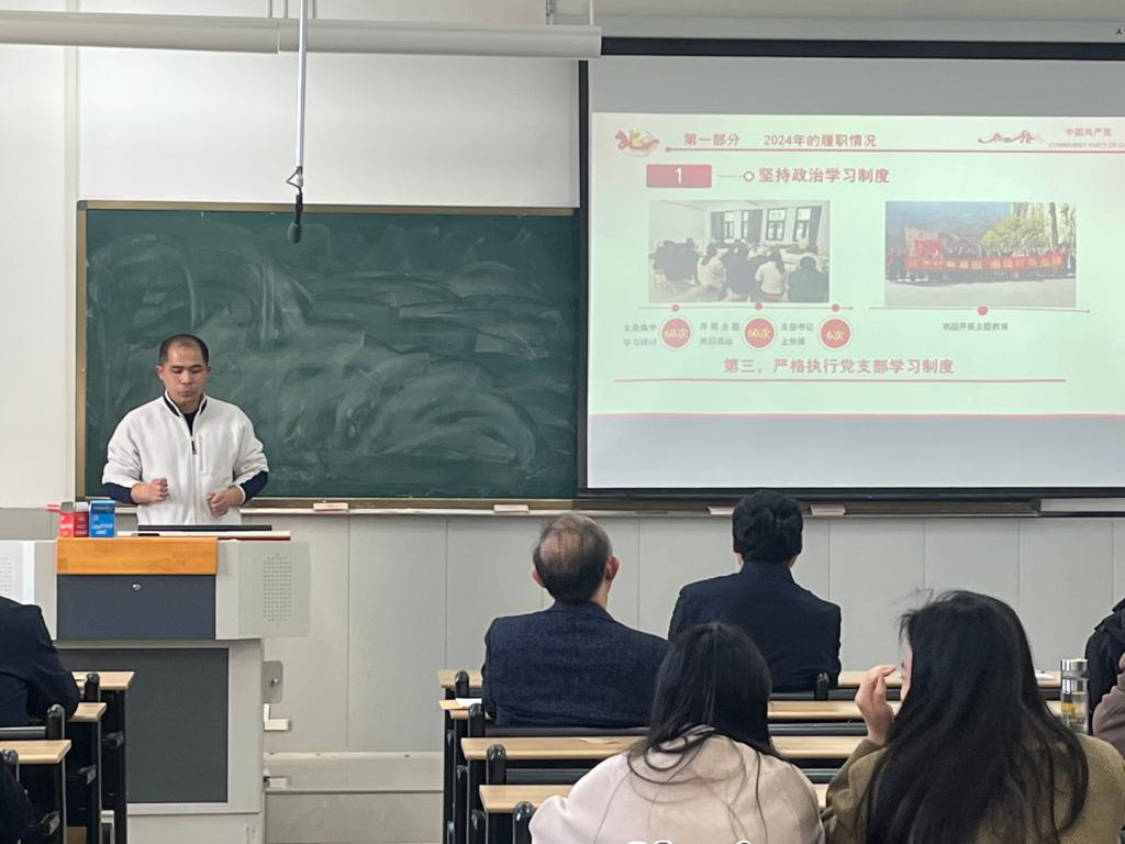 会议伊始,专职老师和辅导员依次上台,围绕2024年的工作内容、工作成果、存在问题及改进措施等方面进行了详细的述职报告。专职老师们分享了在教学科研、课程建设、学生指导等方面的经验与成效,同时也对教学过程中遇到的挑战进行了反思。他们提到,过去一年里积极探索教学方法创新,推动课程改革,取得了一定的教学成果,但在科研项目的申报与研究深度上仍需进一步加强。辅导员们则重点汇报了学生管理、思想政治教育、就业指导等工作,他们表示,将继续加强与学生的沟通交流,关注学生的个性化需求,为学生成长成才提供更有力的支持。