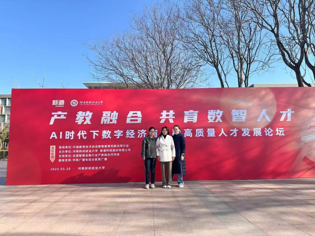 为深入探讨AI时代下数字经济与金融高质量人才的发展路径,促进产教融合,3月20日,我院教师李永霞、杜祎文和周利丹一行3人到河南财经政法大学参加“AI时代下数字经济与金融高质量人才发展论坛会议”。