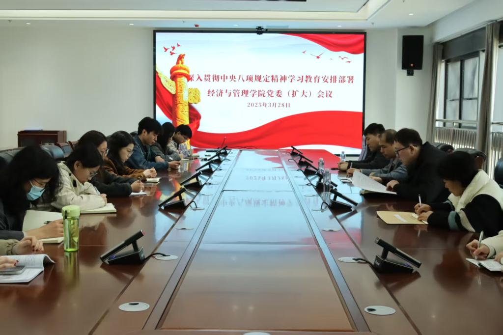 3月28日,经管学院在图书馆1113会议室召开深入贯彻中央八项规定精神学习教育部署会。学院领导班子成员、党支部书记和全体辅导员参加会议。