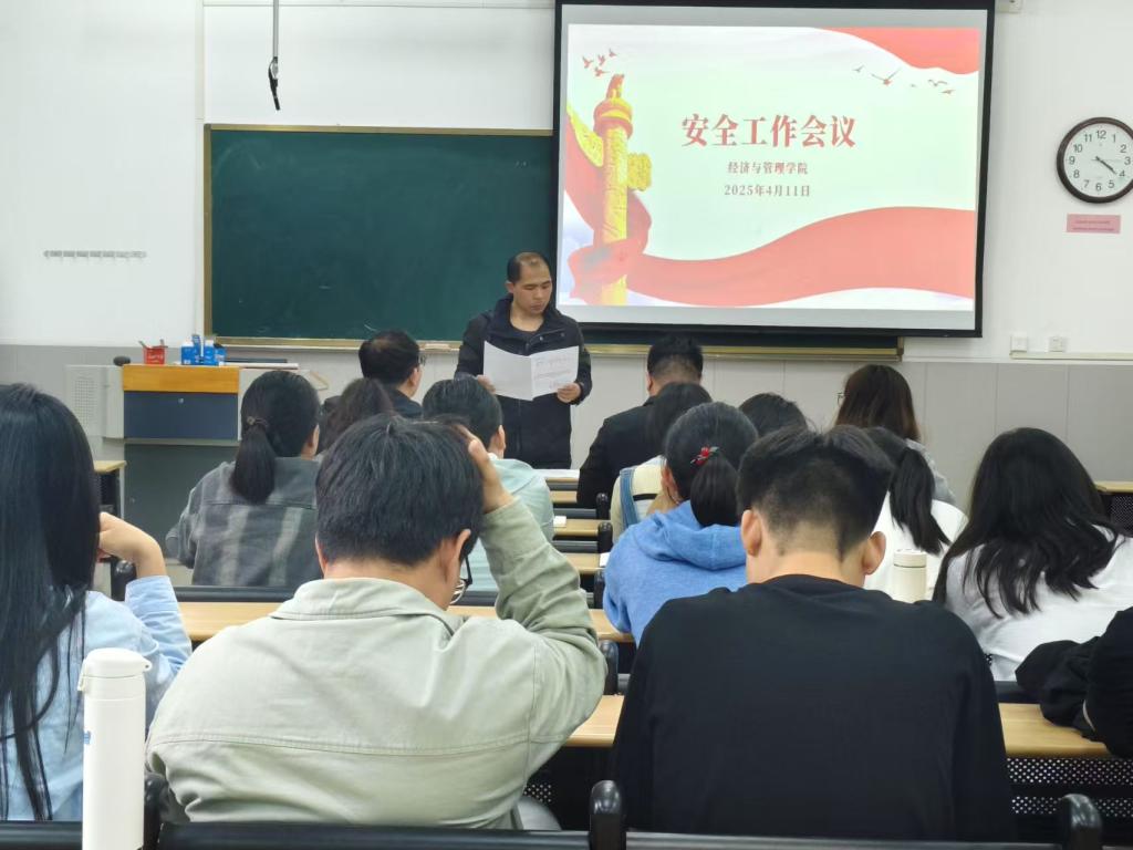 4月11日,经管学院于学院楼B107教室成功召开安全专题会议。我院全体教工党员参加本次会议,会议由院党委副书记张震主讲。本次会议旨在提高我院师生的安全意识,筑牢校园安全防线。