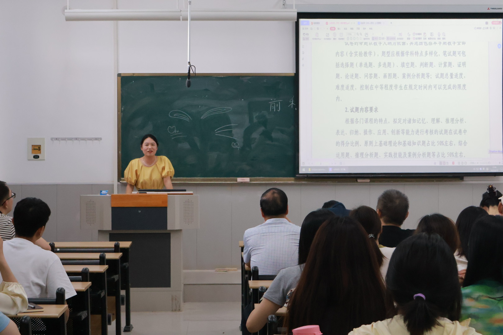 会上,赵蓓首先对本次期末考试的新变动进行了详细说明。她强调,试卷设计必须严格遵循学校相关文件要求,确保试题的科学性、合理性和规范性。在监考环节,她要求全体教师严肃考场纪律,杜绝舞弊行为,切实维护考试的公平公正。针对试卷批改工作,赵蓓特别指出,教师应严格按照评分标准执行,避免主观因素影响成绩评定,确保评卷过程的严谨性和准确性。她提醒各位任课教师务必熟悉最新考试管理规定,及时关注学院发布的考试通知,确保期末考试各项工作顺利开展。