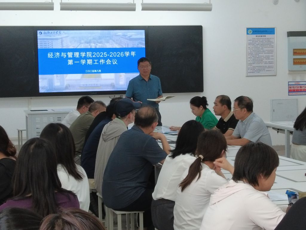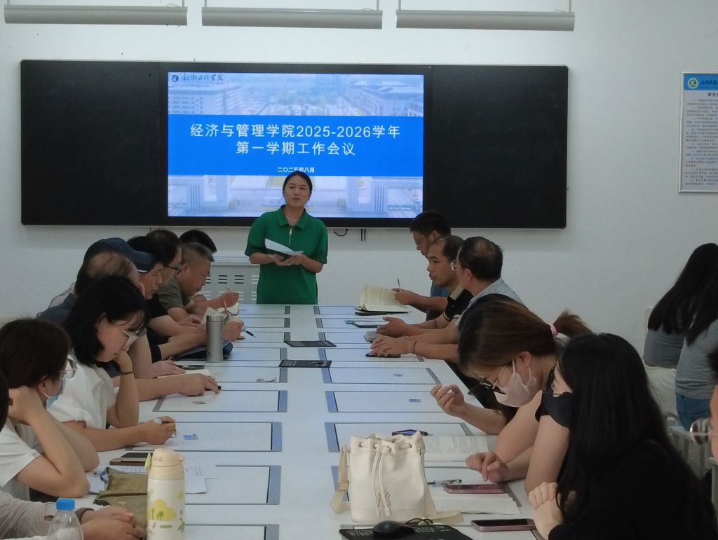 8月29日,经济与管理学院2025-2026学年第一学期第一次全体教职工工作会议在教学楼3-313会议室顺利召开。院长任太增、常务副院长赵蓓、院党委副书记张震及学院全体教职工参加会议。会议由院长任太增主持。
