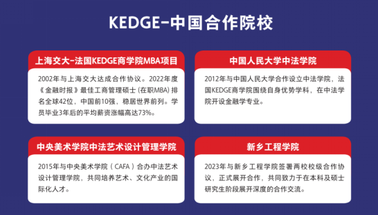 新工-KEDGE 项目是在法国驻华使馆文化教育合作处的大力支持下,由我校与法国KEDGE商学院签署合作协议,共同组织教学计划的联合培养项目,升学录取有保障。2023年4月,法国总统马克龙高度赞扬了KEDGE等法国高校与中国的合作。