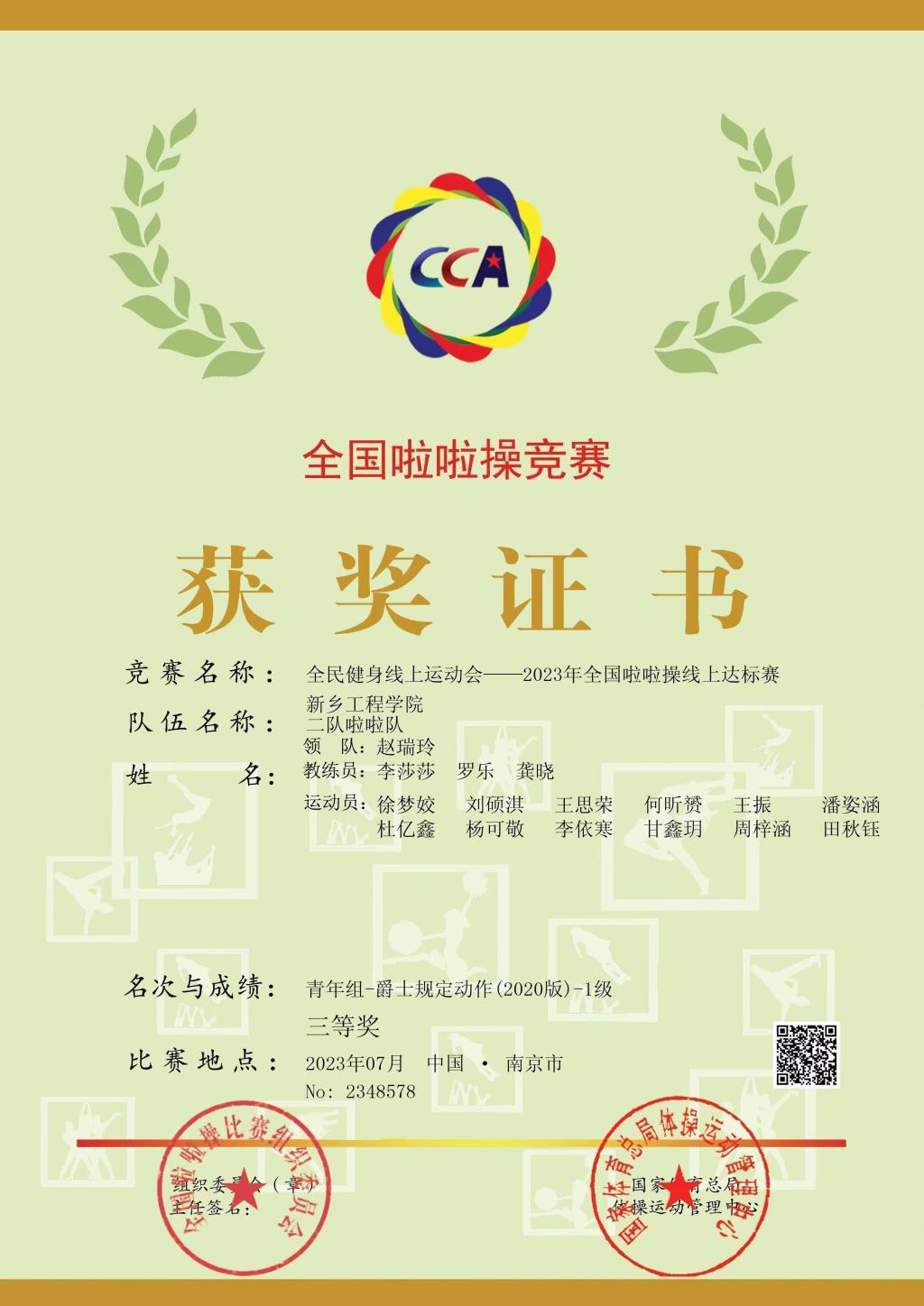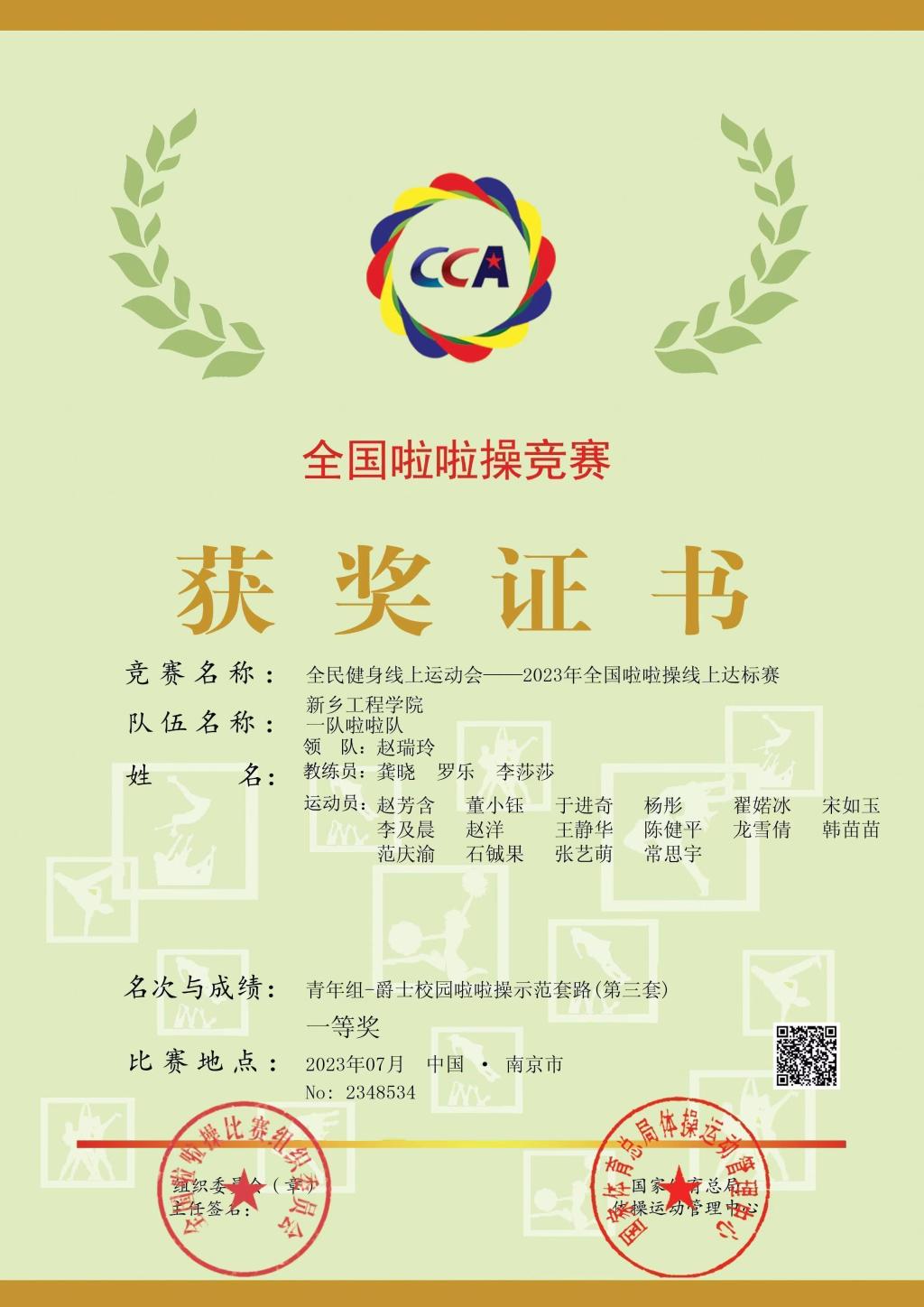 近日,由国家体育总局体操运动管理中心主办的2023年全国啦啦操线上达标赛圆满落幕。我校代表队以优异的成绩荣获青年组-爵士校园啦啦操示范套路一等奖、青年组-爵士规定动作2020版1级三等奖。