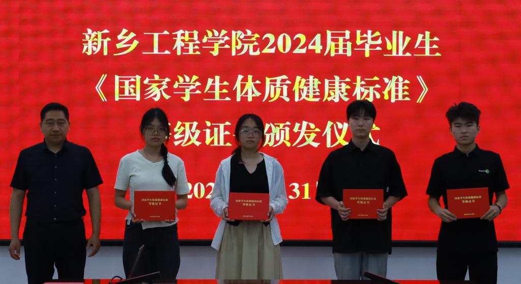 颁奖仪式上,韩国立宣读了获得《国家学生体质健康标准》优秀等级学生名单,赵一鹏、韩国立为获得优秀等级的同学颁发了优秀等级证书。随后,经济与管理学院学生杨得志、生物工程学院学生郑书聪作为优秀学生代表进行了发言,体育学院教师朱祎娜作为教师代表进行了发言。