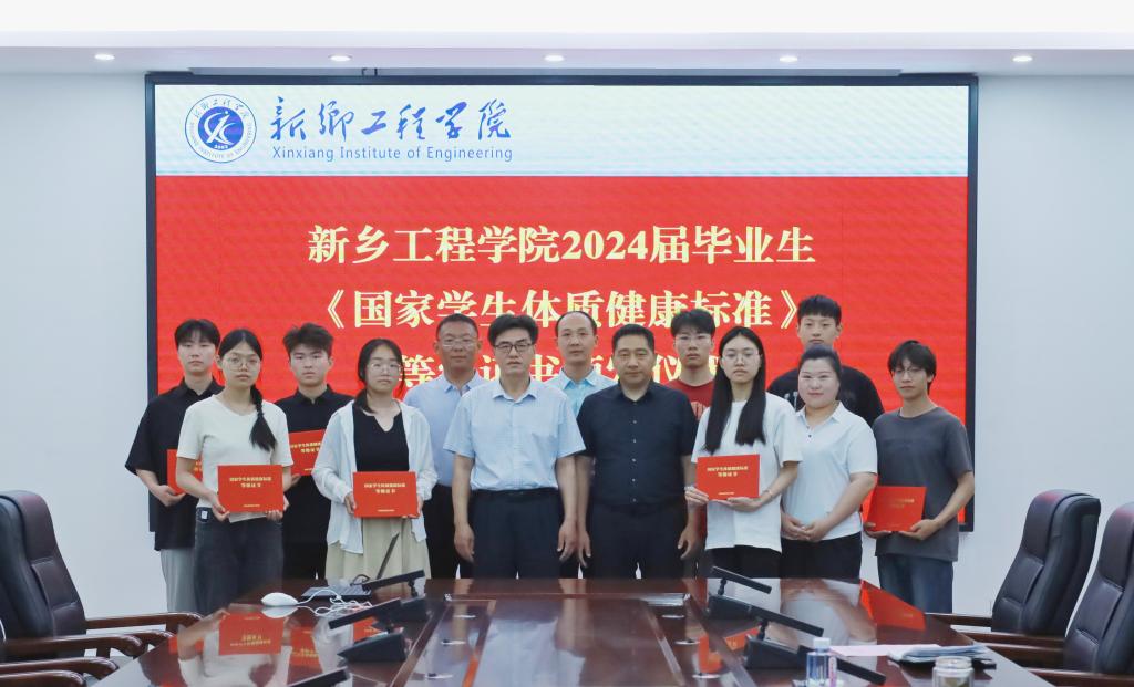 5月31日上午,我校2024届毕业生《国家学生体质健康标准》等级证书颁发仪式在教学楼1-201会议室举行。校体委主任、副校长赵一鹏,校体委副主任、校长助理韩国立,校体委办公室主任、体育学院副院长杨守民,体育学院副院长周建华出席颁奖仪式,颁奖仪式由杨守民主持。