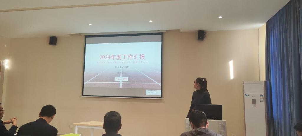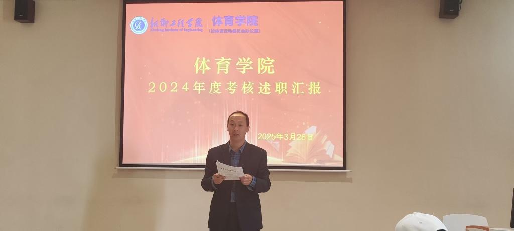 会上,体育学院各位老师依次进行述职汇报,围绕德、能、勤、绩、廉五个方面对自己2024年度的工作进行了总结汇报,并对2025年做了计划。