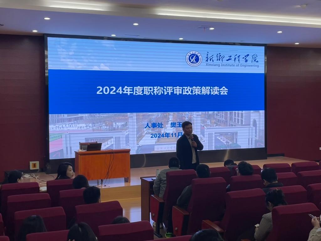 为深入贯彻国家和河南省关于职称评审工作的相关政策,进一步提升我校教师队伍的专业素养和职称评审工作的规范化水平,11月21日上午,我校在学院楼报告厅召开2024年度职称评审工作政策解读会。会议由人事处组织召开,本年度申报职称的全体教师和各基层单位职称工作人员参加会议。