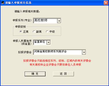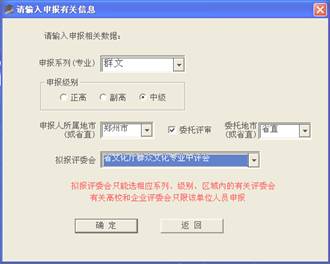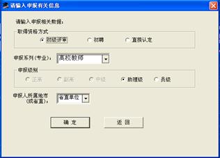 3)选择评价方式、申报系列、级别、申报人所在地市后点“确定”按钮进入相应的录入界面。