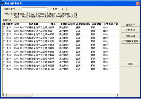 2)“打印资格审查表”按钮进入打印资格审查表界面。如右图。