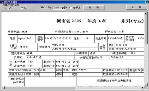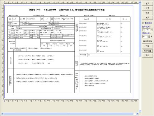 4)点击“打印”按钮,即可在A4纸上打印出按A3评审简表70%左右缩小的完整评审简表,如右图,该表可放大复印。