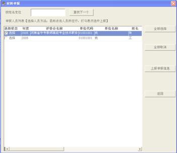 1)点“录入高中级评审简表”按钮,出现右图界面。选择系列(专业)、级别、申报人所在市,