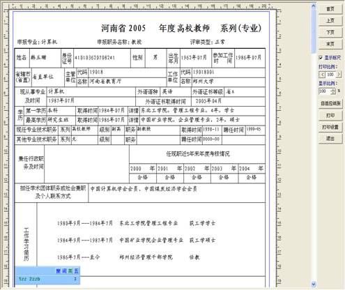 个人申报模块主要用于职称评审简表、初聘表、直接认定表等信息的录入、修改、打印、上报。单位版、职改办版中已包含此模块的所有功能,并附送个人申报模块,以便单独使用,也可以通过“河南职称网”免费下载。